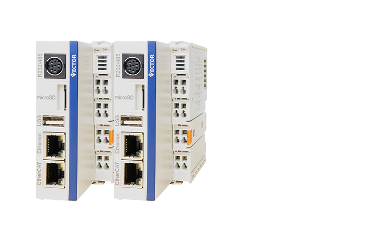 • 威科達(dá)VE系列運(yùn)動(dòng)控制器,搭載高性能CPU(4核1.6GHZ主頻)具有強(qiáng)大的運(yùn)算能力,基于linux系統(tǒng),采?CODESYS編程?具,?持IEC61131-3國(guó)際標(biāo)準(zhǔn)的6種編程語?的高性能運(yùn)動(dòng)控制器。標(biāo)配EtherCAT工業(yè)以太網(wǎng)實(shí)時(shí)總線,可以實(shí)現(xiàn)最大64軸同步控制。